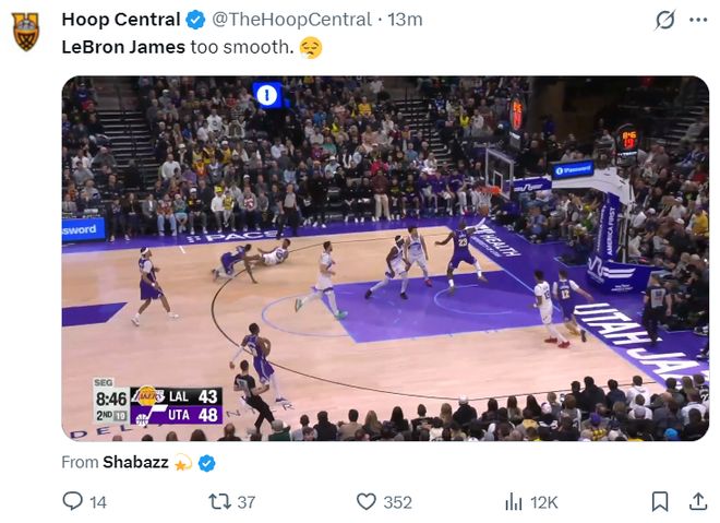 末节开场詹姆斯连拿4分帮助湖人反超,随后詹姆斯被换休休息,詹姆斯登场就助攻东契奇三分命中打停爵士,湖人领先12分到被爵士缩小到4分只用了三分钟,但八寸垒两罚全中,老詹两罚全中再度拉开,随后比赛走向完结。